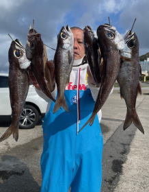 黒ムツから入ってポツリポツリ…全員お土産になりました。美味しいお魚もしっかりお土産(^^)vお刺身サイズ多かったです。後半のコマセ五目は、底潮冷たいのか珍しいくらいにダメ・ダメ。最後は沖の五目へ。明日も黒ムツ・五目で出船致しますのでご予約お待ちしております。』