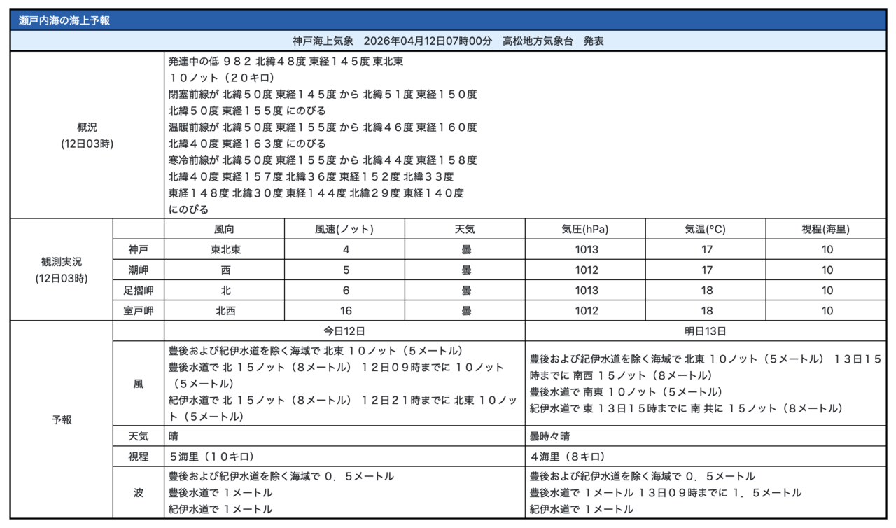 「海上予報:瀬戸内海」(気象庁)