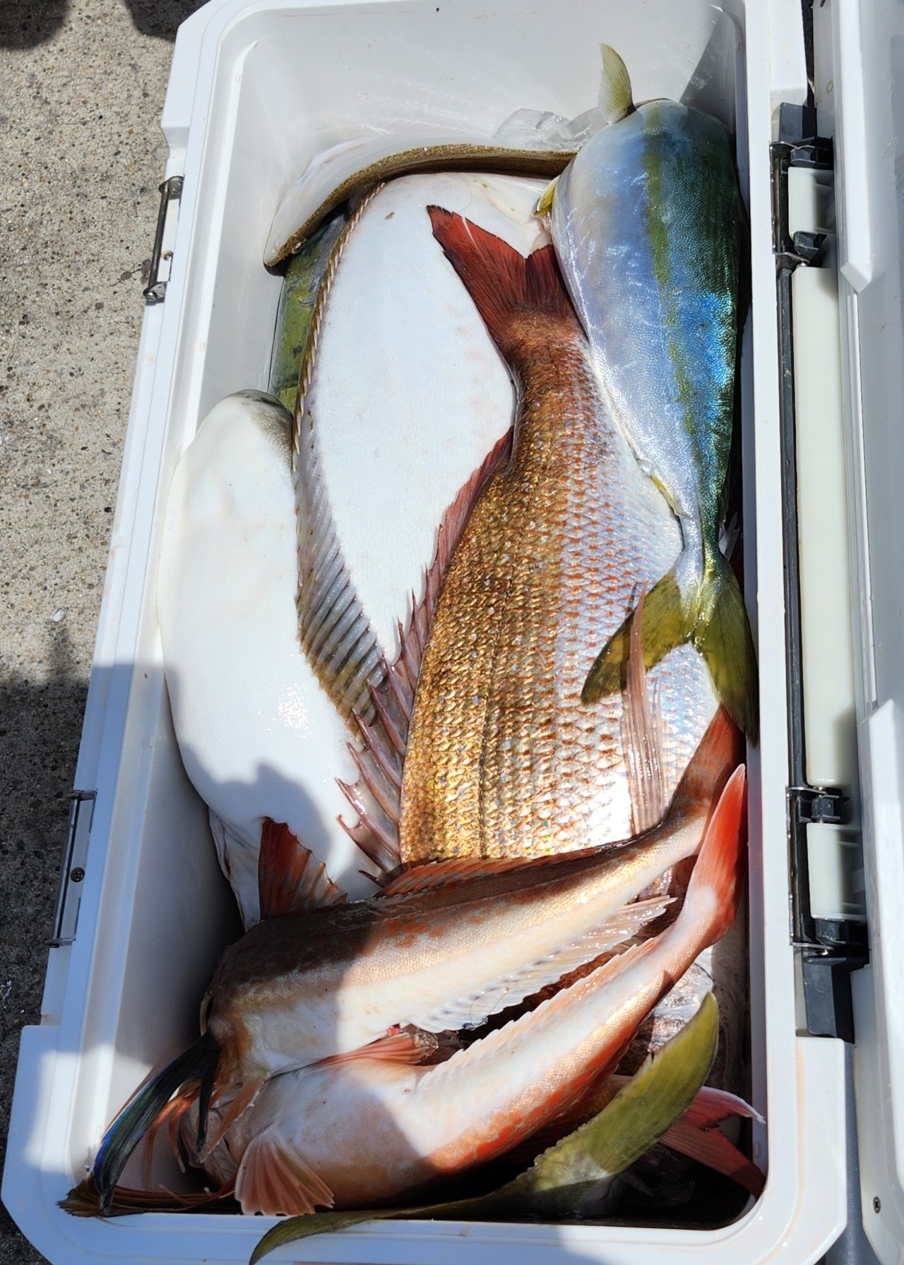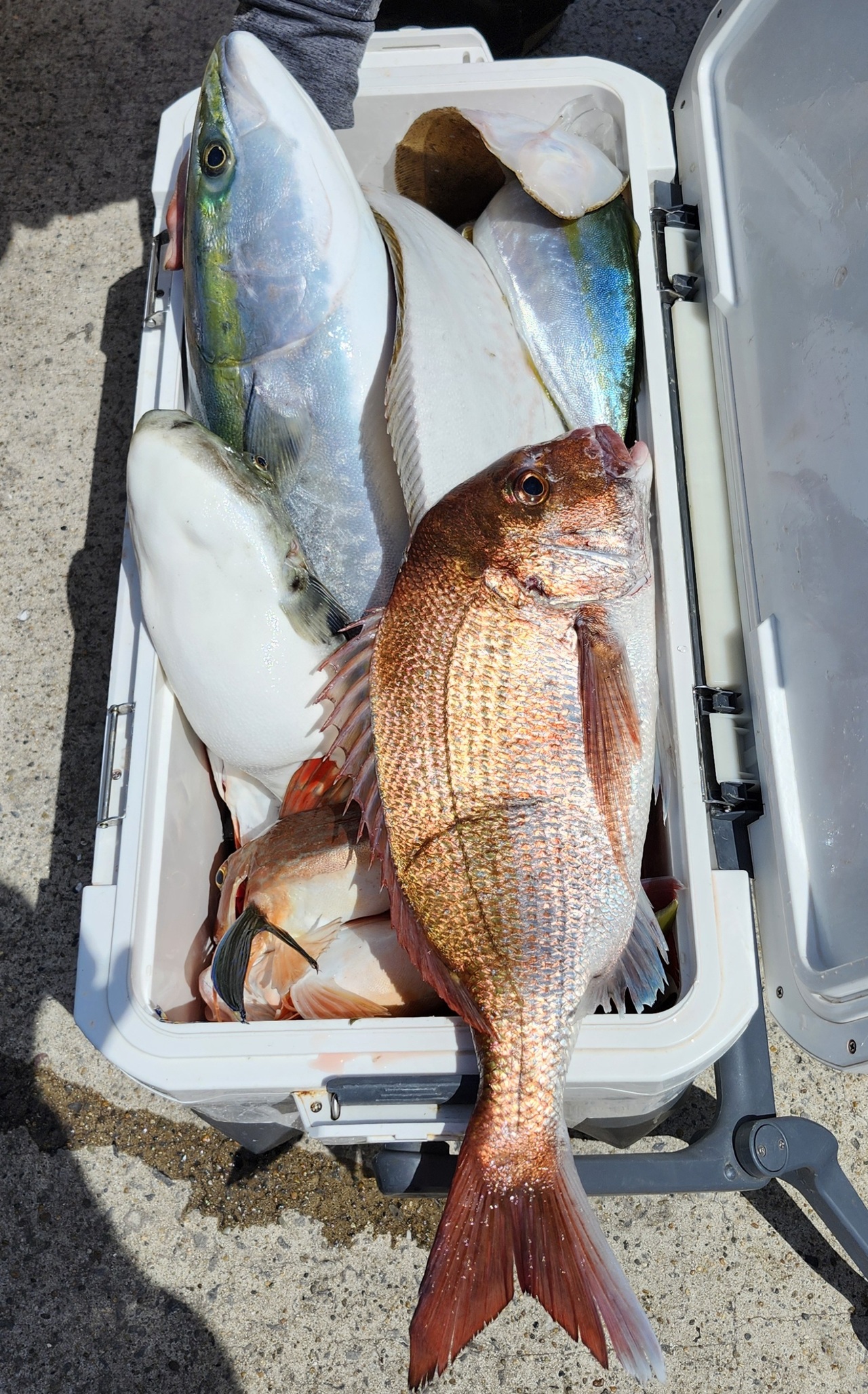外道ハナダイ、ホウボウ、ブリ、ワラサ、イナダ、ヒラメ、ショウサイフグ