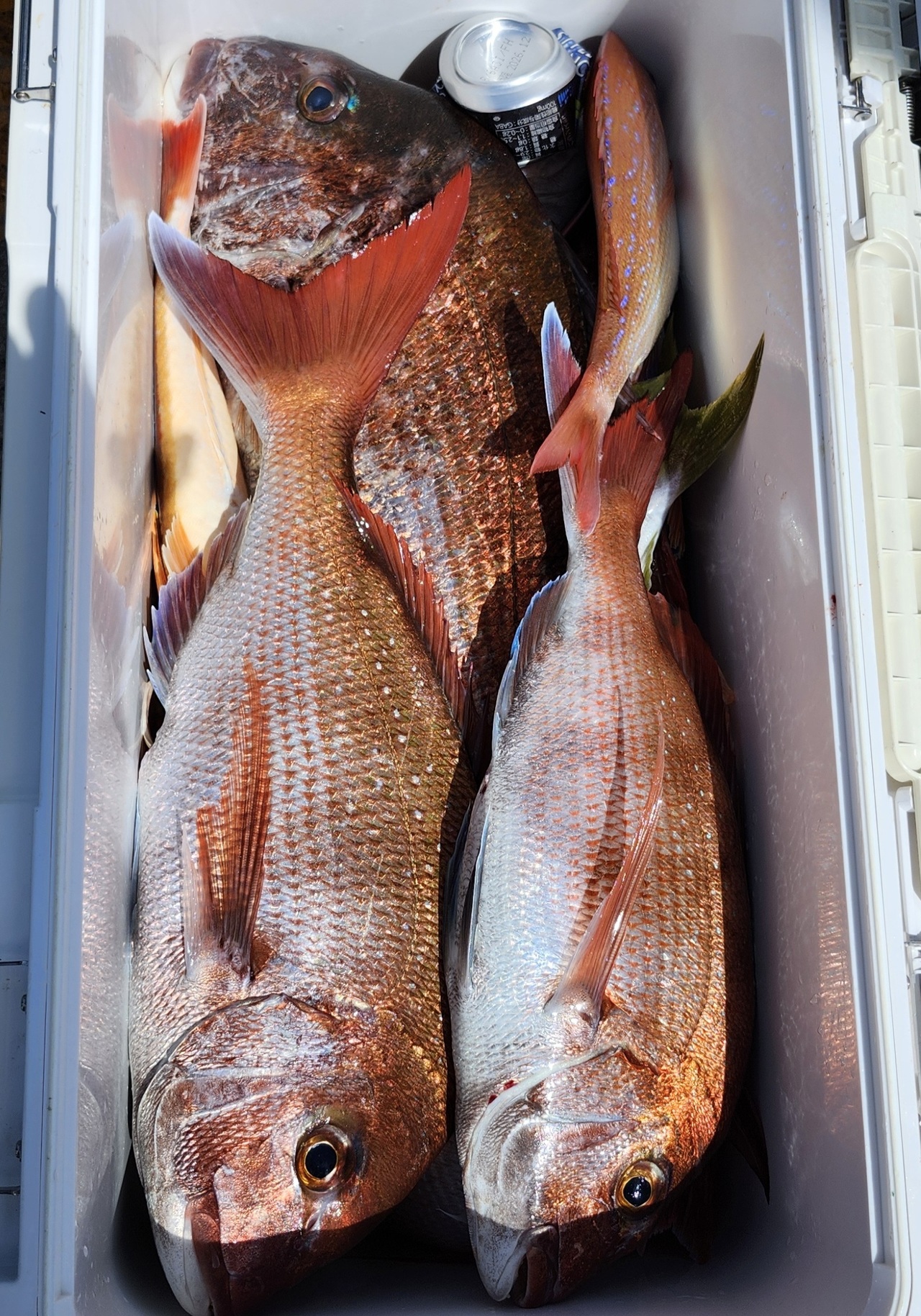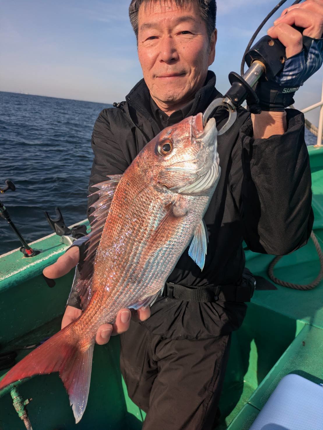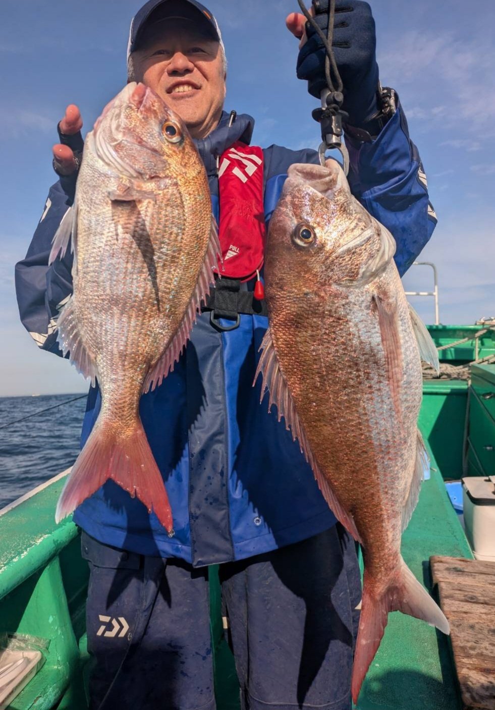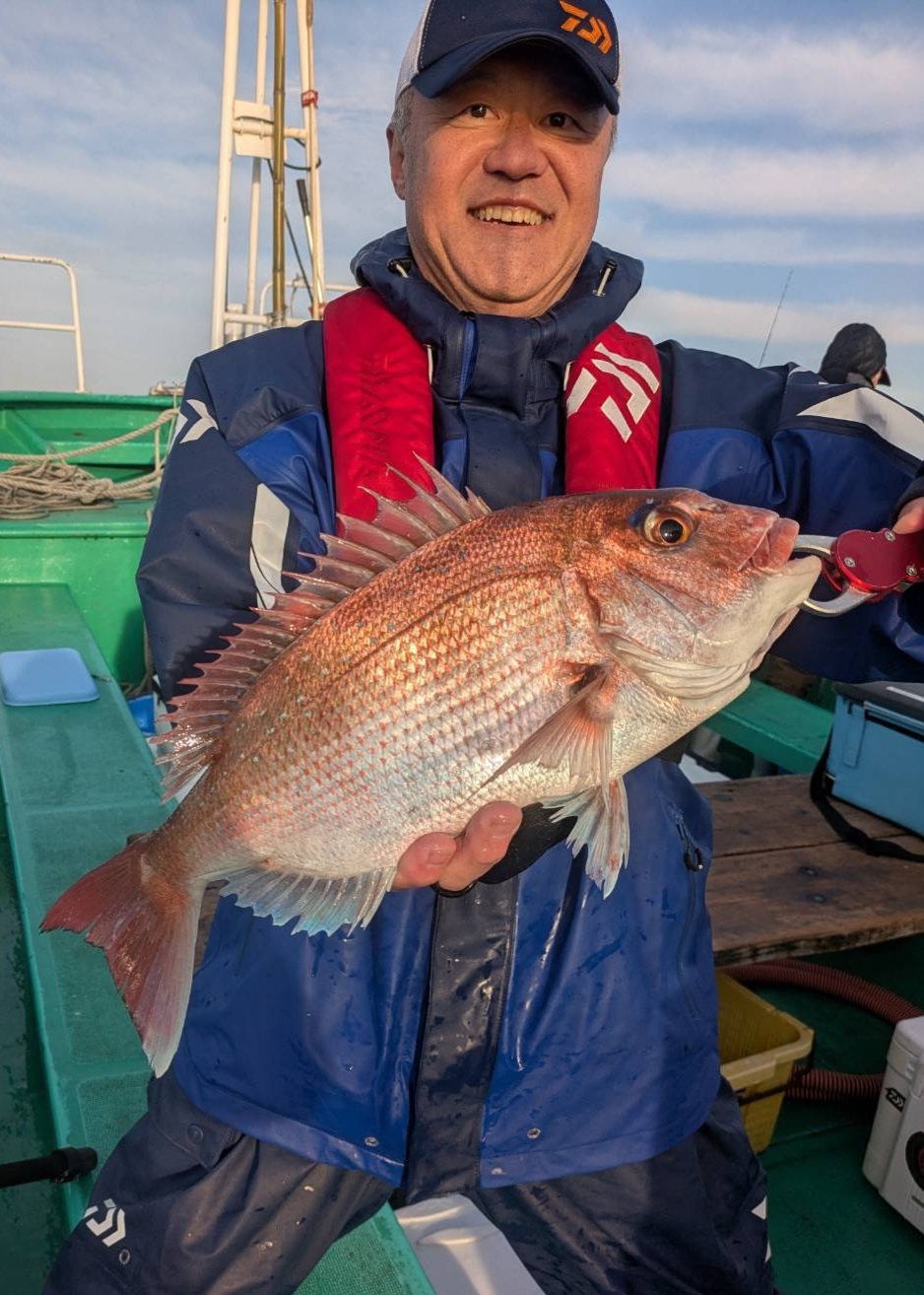 午前真鯛船は開始から中鯛主体にポツポツ掛かり大鯛も上がりました。中盤には今シーズン最大、特鯛も上がりました。